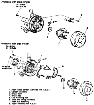 - Brake drum. Or, if equipped with disc brakes, remove the caliper assembly