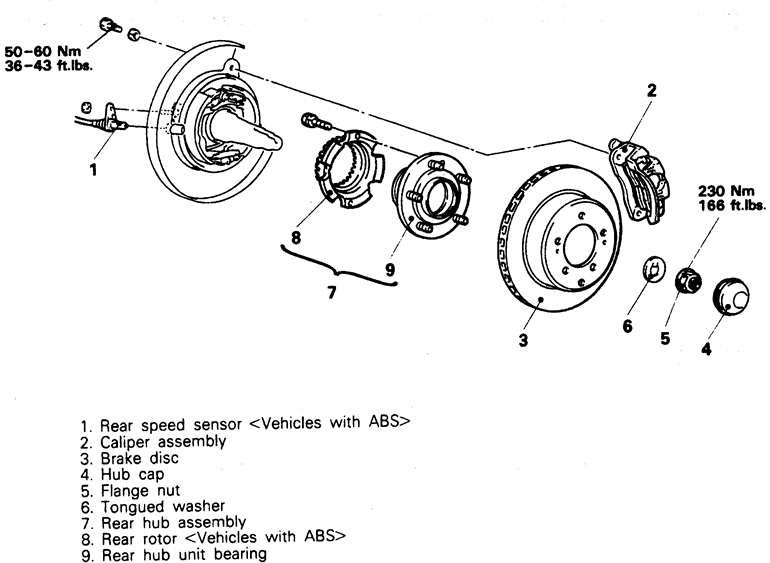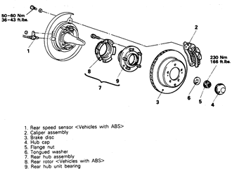 - Rear hub assembly using a new flange nut. Torque the flange nut to 130