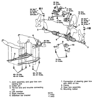 NOTE: When removing the rack and pinion assembly, tilt
