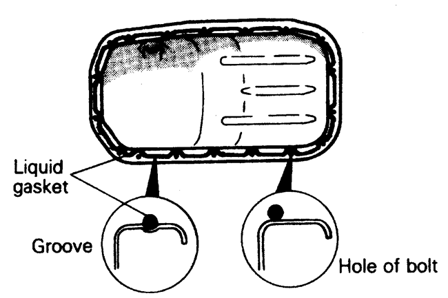 NOTE: Assemble the oil pan to the cylinder block within 15 minutes after applying the liquid gasket.
