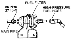 OFF. Properly relieve fuel pressure before disconnecting any fuel lines.