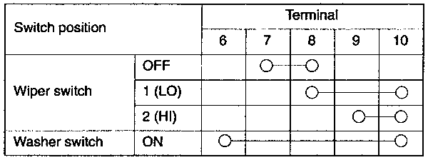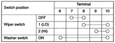 | Fig. 5: Windshield wiper and washer switch continuity test — Montero |