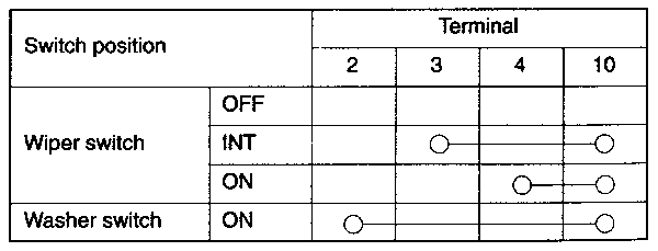 | Fig. 4: Windshield wiper and washer switch continuity test — Montero |