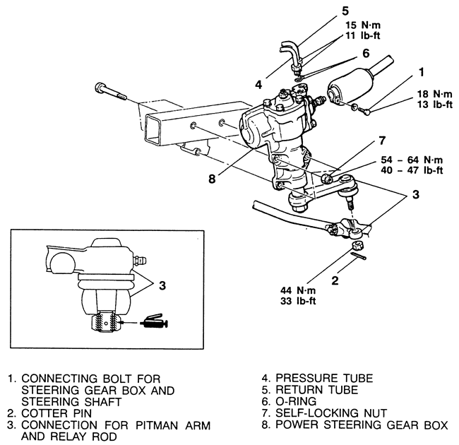 Fluid lines to the steering gear use a new O-rings. Torque the fittings