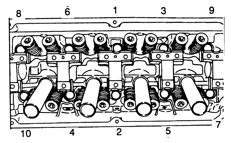 | Fig. 5: Cylinder head bolt tightening sequence — 2.4L engines |