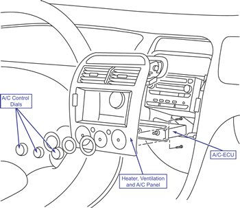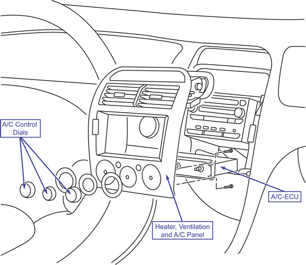 - Remove the heater, ventilation, and A/C panel.