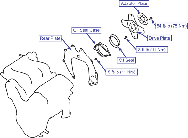 - Remove the drive plate and gasket.