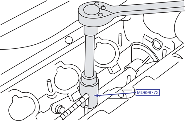 As shown in the illustration, use a special tool (MD998773) to remove the knock sensor.
