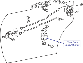 NOTE: Front door lock actuator is integral with the front door latch assembly.