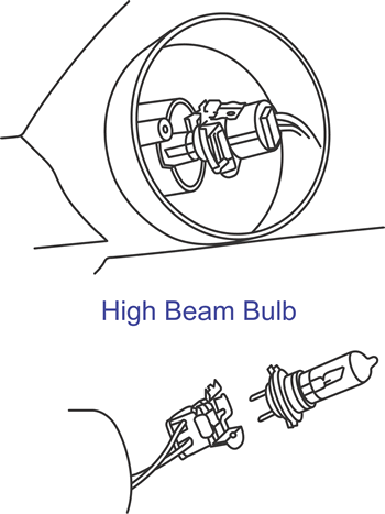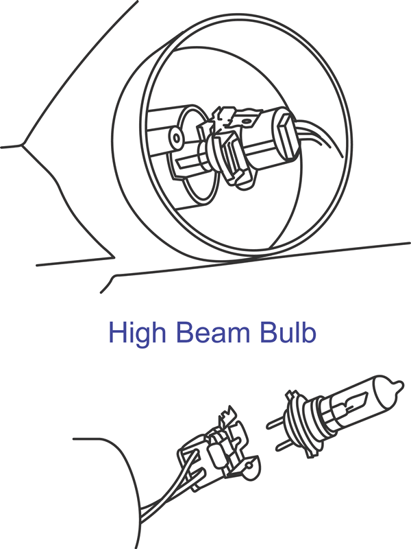- To remove a high beam bulb, twist the bulb housing counterclockwise.