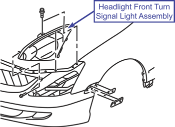 - Remove the front bumper fasteners, headlight retaining bolt, and headlight-to-front-support-panel bolts.