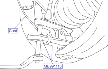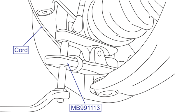 Tie the cord of the special tool (MB991113) to the nearby part. Loosen the nut but do not remove it.