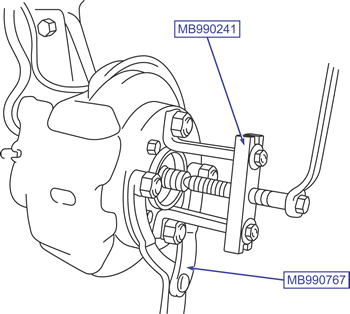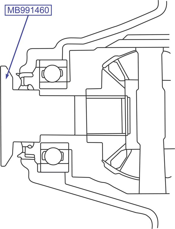 Do not apply the full load of the vehicle onto the wheel bearings when the drive shaft has been removed. If you need to apply a load to the bearings in order to move the vehicle, for instance, use the special tool to temporarily secure the bearings.