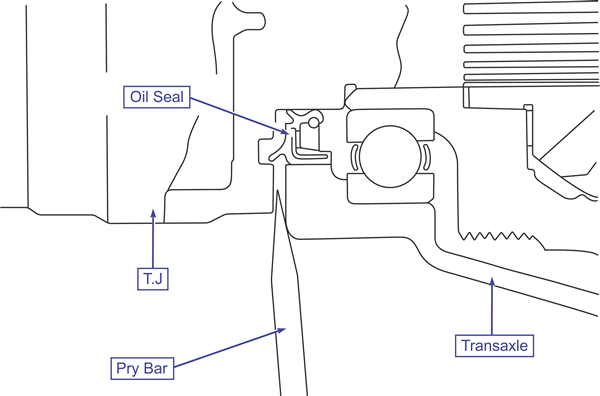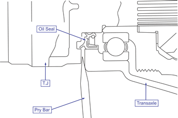 Pulling on the drive shaft will damage the T.J. Make sure to use the pry bar.