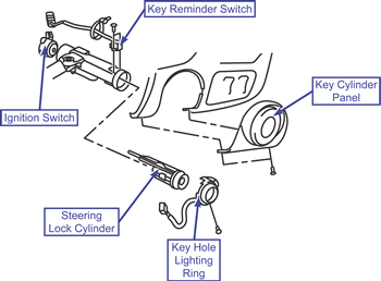 - Install the key reminder switch and the ignition switch.