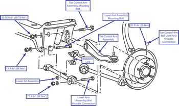 NOTE: Fasteners marked with * should be hand tightened until the vehicle is back on the ground, then they should be fully torqued to their specifications.