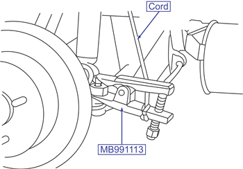 NOTE: Make sure you tie the cord on the special tool (MB991113) to another part. Also, loosen the nut but do not remove it.