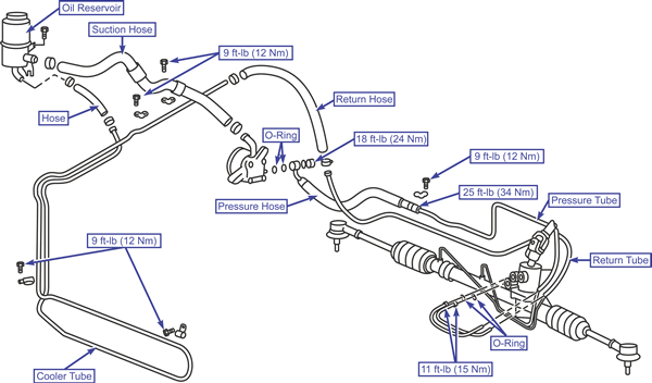 - Connect the pressure hose so its slot section contacts the oil pump’s guide bracket.