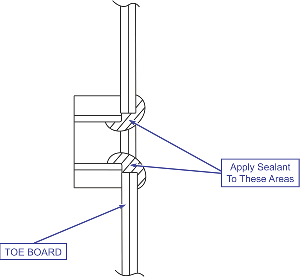 - Right before installing the retainer mounting bolt, coat the mounting hole on the toe board with Three-bond 1104 sealant or an equivalent. See illustration for location.