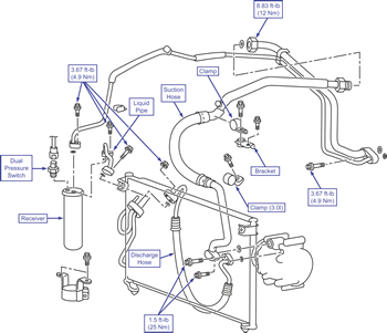 Lubricate new O-rings with SUN PAG 56 compressor oil during assembly.