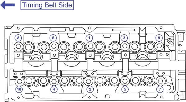 | Cylinder head bolt tightening sequence (2.4L)