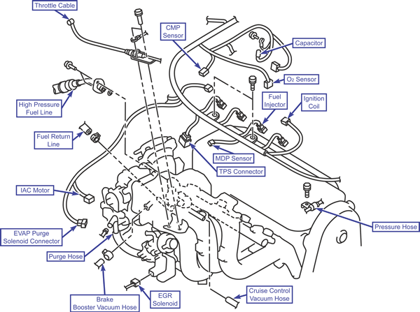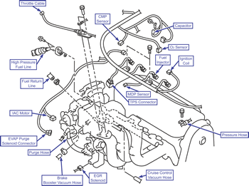 - Connect the cruise control vacuum hose if equipped.