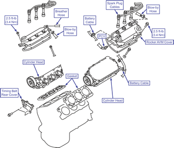 | Cylinder head removal/installation 1 of 2 (2.4L)