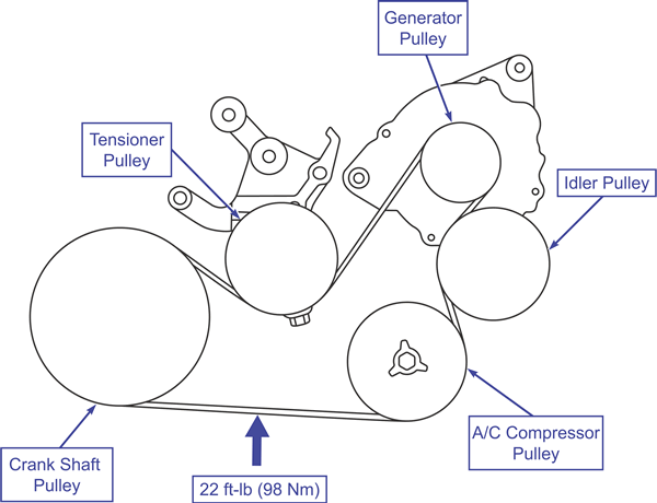 | Generator & A/C compressor belt removal/installation (3.0L) |