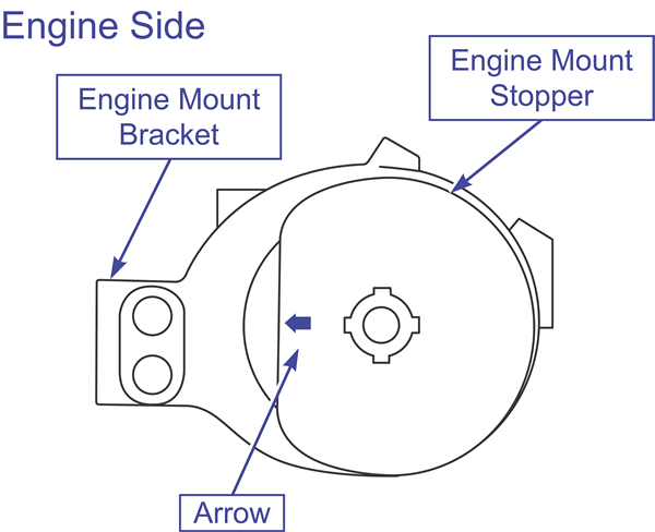 - When installing the engine mount stopper, make sure to clamp it so the arrow points in the direction shown.