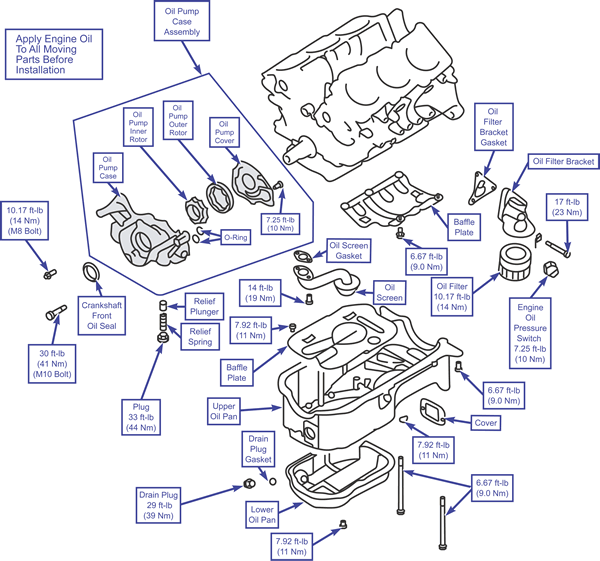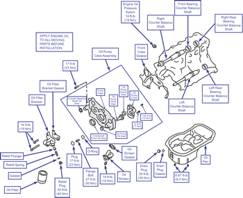 26. When installing the engine oil pressure switch, put sealant on the threads of the engine oil pressure switch, then tighten to 14 ft-lbs (19 Nm). The manufacturer recommends using 3M™ AAD part #8672 or an equivalent.