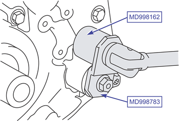 8. Use the crankshaft front oil seal installer (special tool #MD998375) to install the crankcase front oil seal onto the front case.