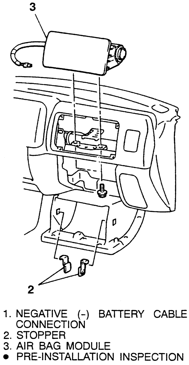 | Fig. 2: Exploded view of the passenger's side air bag module-Mitsubishi Montero Sport |