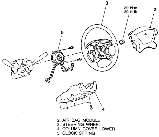 | Fig. 3: Exploded view of the steering wheel and air bag module-Mitsubishi Montero Sport |