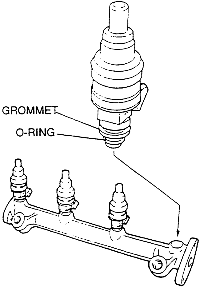 Fuel rail and insulators. Torque the bolts to 106 inch lbs. (12 Nm).