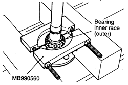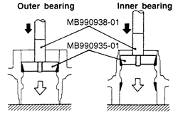 Press-fit the bearing outer race into the bearing case by using the tool MB990890-01.