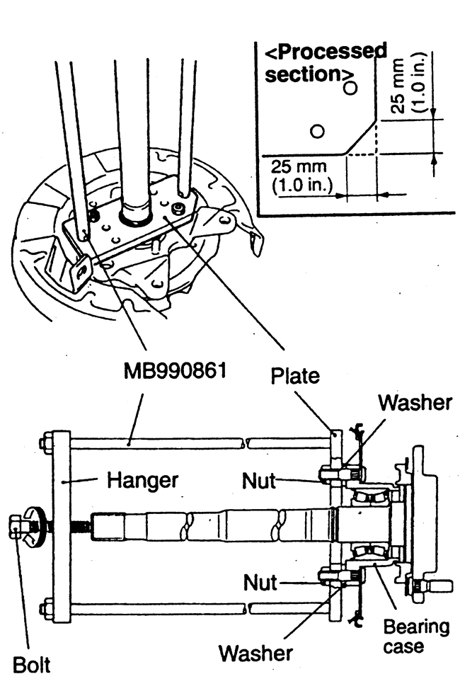 - Grind the plate of special tool MB990861 with a grinder (see illustration)