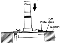 - On vehicles without ABS, insert an iron plate of approximately 0.04 in.