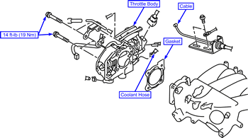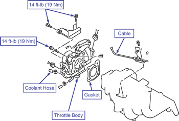 NOTE: Partially drain the engine coolant before disconnecting the coolant hose from the throttle body.