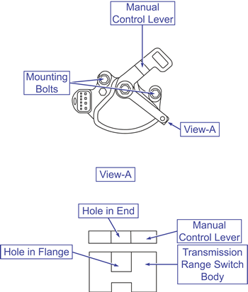 NOTE: The transmission range switch body can be aligned by inserting a 5-mm diameter steel bar into the end hole of the manual control lever and the flange hole of the transmission range switch body.