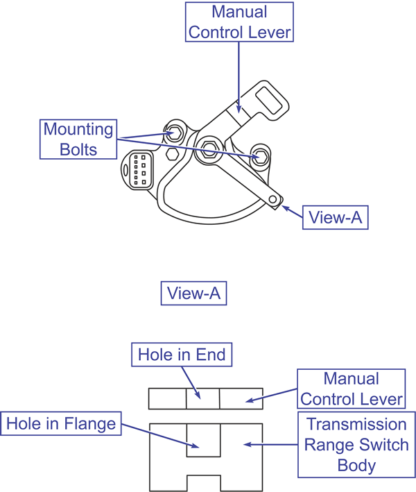 | Transmission range sensor alignment holes (view A) |