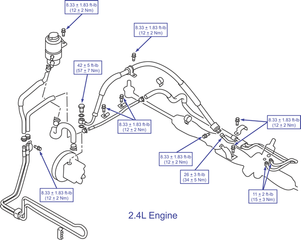 | Power steering hoses removal/installation (2.4L) |