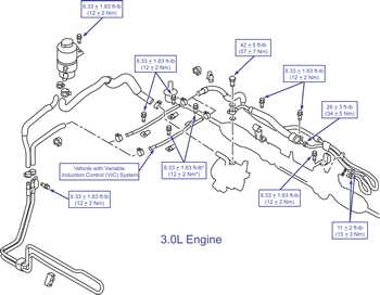 | Power steering hoses removal/installation (3.0L) |