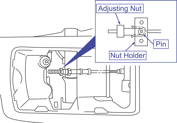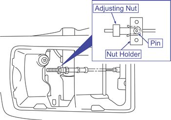 Turn the adjusting nut at the lever to adjust the parking brake lever stroke to the specified value. After adjusting, check that there is no space between the adjusting nut and the parking brake lever.