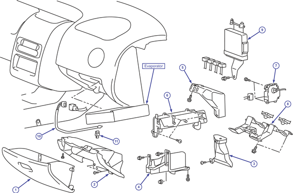 Evaporator removal/installation passenger compartment side (remove parts in order show)