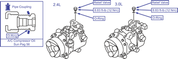 The compressor needs to be removed prior to servicing the relief valve.