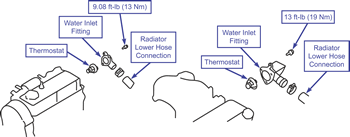 3. When disconnecting the radiator lower hose connection, put mating marks on the radiator lower hose and hose clamp before you disconnect them.