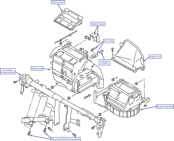 NOTE: It is not necessary to remove the instrument panel for evaporator service.