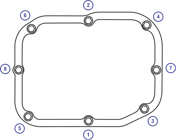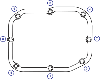 - Install the lower oil pan and tighten the bolts in the sequence shown.