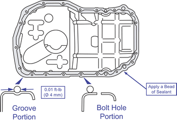 NOTE: Be sure to install the engine oil pan within 15 minutes after applying the sealant.