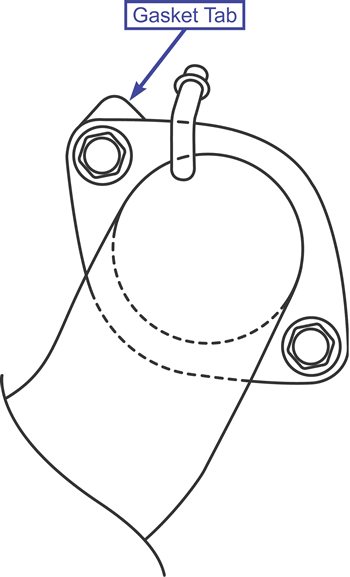 Install the turbocharger oil return pipe with a new gasket. Install the gasket with the tab as shown.